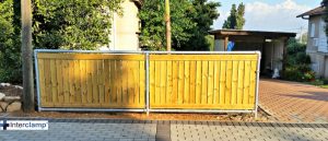 גדר זו נבנתה בעזרת מחברי אינטרקלמפ אשר מתחברים לצינורות אלומיניום. במקרה זה, שולב עץ בגוף הגדר כדי ליצור ניגודיות מעניינת. היכולת לבנות כל קונסטרוקציה ולשלב